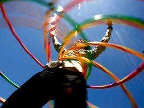 2. 跳跃转圈:在原地转圈的基础上,尝试跳跃,让呼啦圈在空中转动。